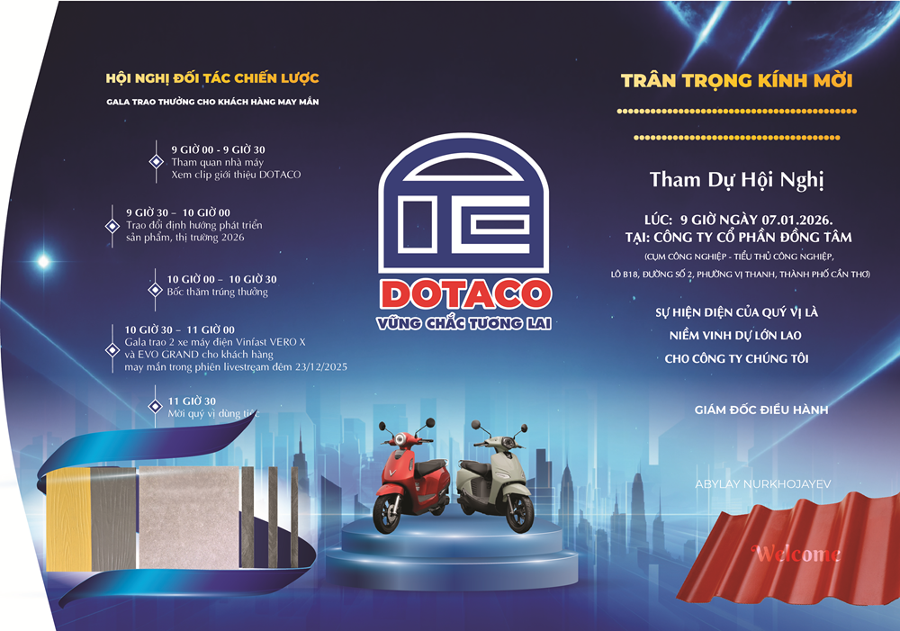 DOTACO rất trân trọng và cảm ơn Quý lãnh đạo, Quý khách hàng, Quý nhà thầu công trình đã đăng ký tham dự.